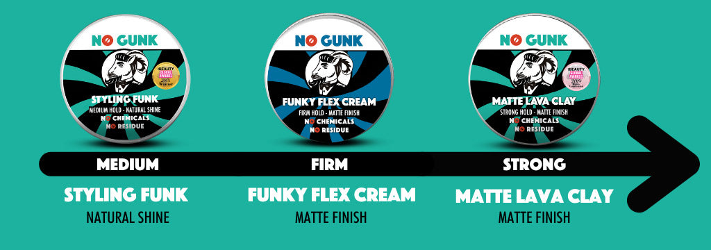 Introducing the NEW NO GUNK Matte Lava Clay: A natural hair clay made with mineral rich Moroccan Lava Clay. Expect a textured natural look with a matte finish. This highly natural matte hair clay offers unmatched nourishment and style in an eco-friendly aluminium tin that fits in your pocket, perfect for travel & on the go. With its supple lightweight consistency, there's no residue on your hands or hair after use. It smells so good you might even be tempted to eat it. Join the Matte Lava Clay revolution Funky Fellas. JUST FUNK!